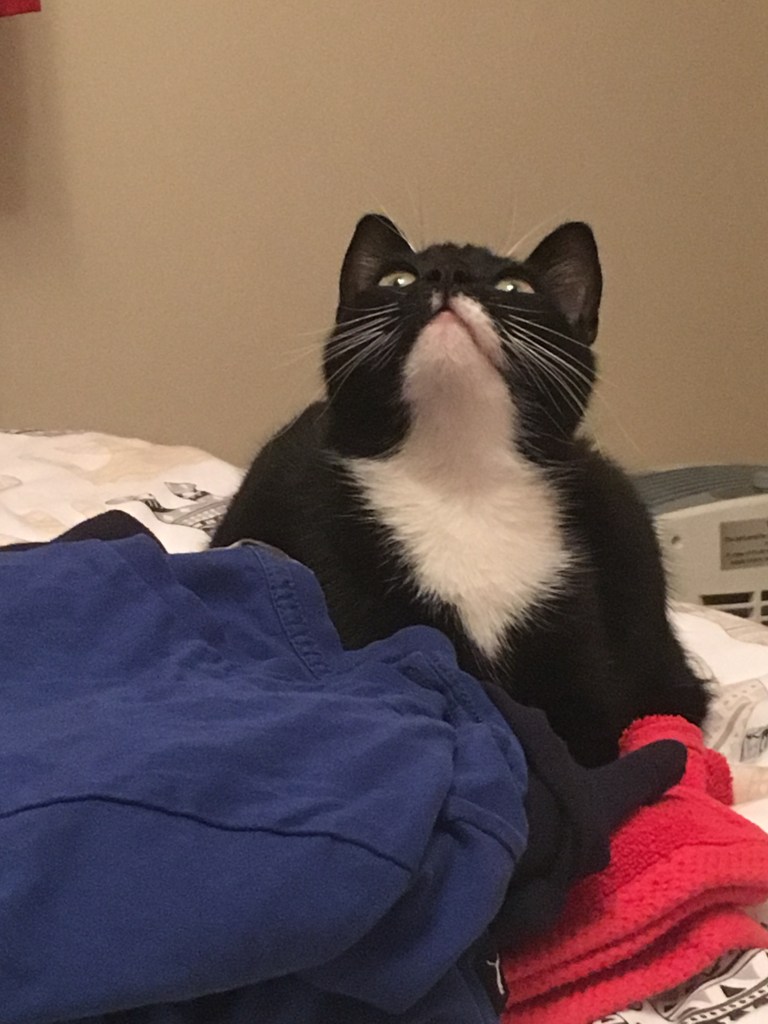 For a cat whose experiences with kids hasn’t been great so far, it makes me giddy to see him follow her around the house to see if he can get in on her adventures.